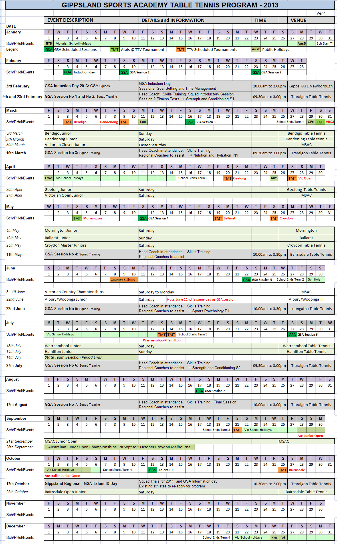 In 2009 a steering committee was set up comprised of representatives from Table Tennis Victoria, Gippsland Sports Academy, Traralgon, Bairnsdale and Leongatha Associations to form a regional Table Tennis Academy Squad.
